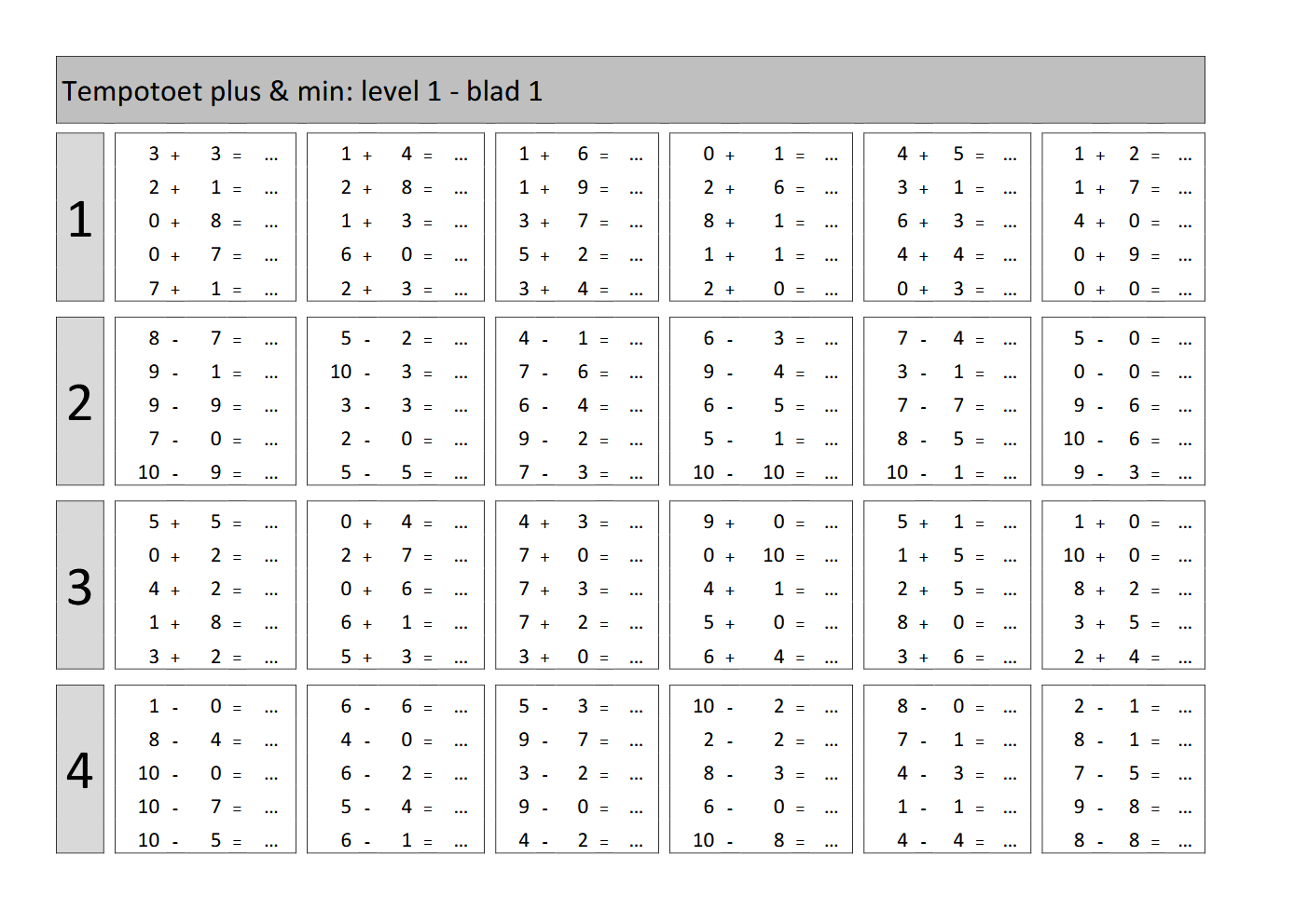 Met deze tool kunt u een tempotoets genereren. Het is mogelijk om het hele blad of per rij een andere categorie in te stellen.